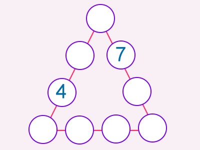 En el siguiente triángulo debes escribir los números del 1 al 9 de forma que la suma de cada uno de los lados sea 20.