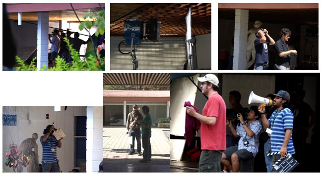 La directora que va de un lado a otro, comentando, sugiriendo, aclarando, analizando secuencia, para finalmente, cuando todo está listo, gritar: “ACCIÓN” palabra mágica porque todo el mundo se enmudece y el ambiente externo se vuelve casi irreal con personas que con dedito a cruz sobre la boca, y miradas severas, intima al silencio a alguien que, ignaro de la circunstancia, se atreve a hablar.
