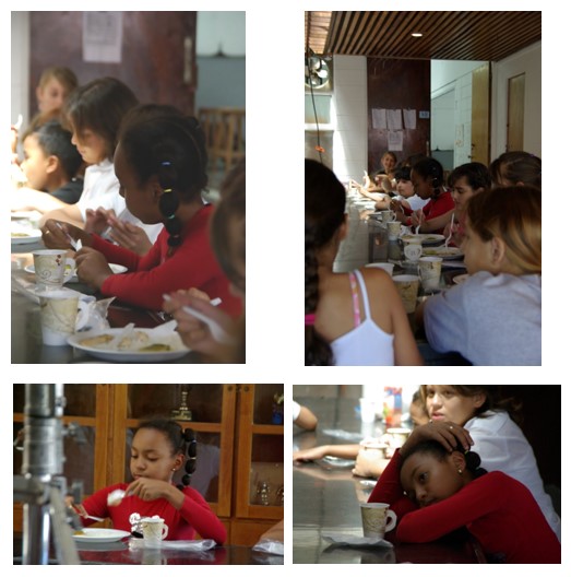 Y qué decir de las encargadas al maquillaje, siempre listas para delinear los detalles de los rostros de nosotros niños que, a decir la verdad, estamos más interesados en correr y jugar que ensayar. Y también aquellas encargadas de vestuarios que se preocupan para que nuestras camisetas, que por efecto de nuestras travesuras, se mojan o se ensucian, se vean siempre planchaditas y secas.