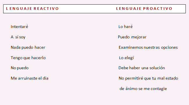 Me llamó la atención porqué a veces mi comportamiento es parecido al lenguaje reactivo que menciona y que, seguramente, debo transformar en proactivo. Si aprendemos desde niños, dice mi abuela, nos va a ser más fácil en el futuro.