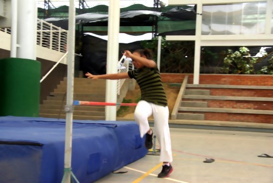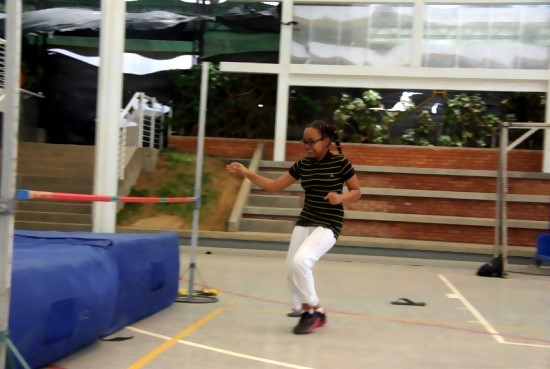 Resalte con acción sincrónica de los brazos de manera poderosa.